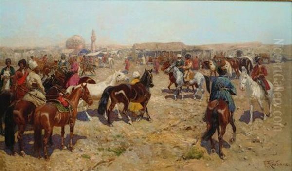Bring the timeless beauty of Franz Roubaud's Targ Konski into your home with a handmade oil painting reproduction. Carefully recreated on canvas by skilled artists using traditional techniques, this piece captures the delicate brushwork, subtle light, and vibrant color of the original masterpiece. With museum-level quality and rich texture, it brings elegance and artistic depth to any space. Enjoy free shipping and make this masterpiece a part of your personal collection.