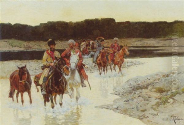 Tscherkessen Bei Der Uberquerung Eines Flusses Oil Painting by Franz Roubaud