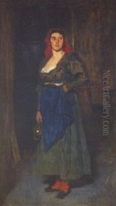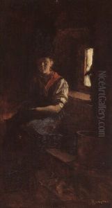 Madchen In Weissem Kleid Unter Heckenrose Bauernmadchen Mit Waschtrog