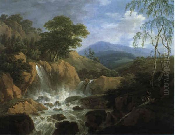 Wildbach In Idyllischer Landschaft Mit Figurlicher Staffage