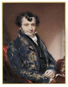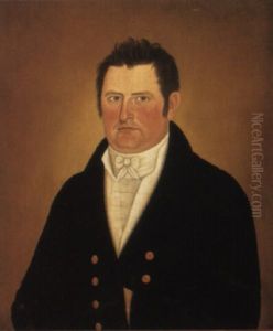 Portrait Of A Gentleman Wearing A White Chemise With Golden Buttons Under His Black Frock Coat