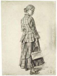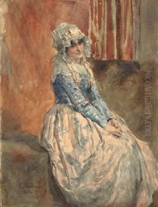 Das Rote Service (madchen Im Rosa Kleid In Einem Festsaal, Ein Tablett Mit Einem Porzellanservice Haltend)