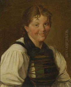 Brustbildnis Eines Jungen Brunetten Madchens In Tracht Mit Buntem Halstuch.