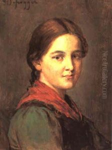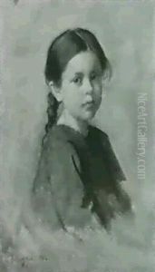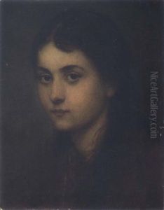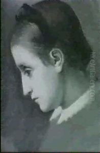 Madchenkopf Mit Welligem Haar,im Profil Nach Rechts Gewendet