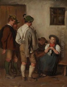 Die Unterhaltung: Drei Dirndl Und Zwei Jager In Der Stube