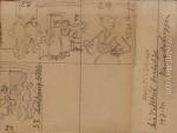Buchfuhrungsblatt Mit Drei Skizzen Nach Gemalden
