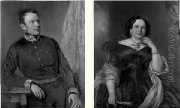 (ecole Autrichienne Xixe Siecle) Portrait D'officier Et De Son Epouse