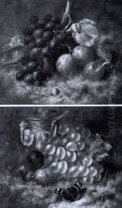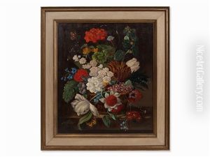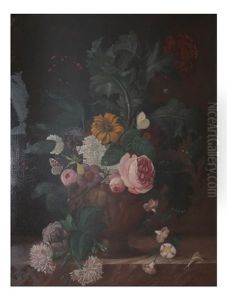 Groses Blumenstuck In Altmeisterlichem Stil Mit Schmetterlingen Und Trauben
