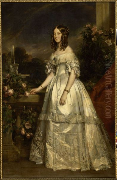 Bring the timeless beauty of Franz Xavier Winterhalter's Portrait ofPrincess Victoria of Saxe-Coburg and Gotha(1822-1857), Duchess of Nemours into your home with a handmade oil painting reproduction. Carefully recreated on canvas by skilled artists using traditional techniques, this piece captures the delicate brushwork, subtle light, and vibrant color of the original masterpiece. With museum-level quality and rich texture, it brings elegance and artistic depth to any space. Enjoy free shipping and make this masterpiece a part of your personal collection.