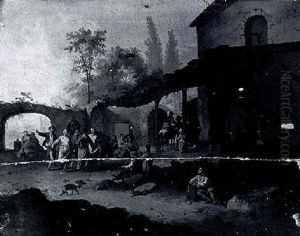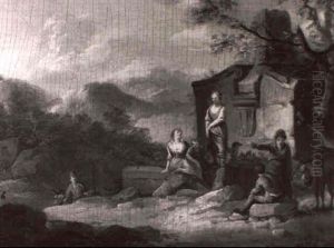 Landscape With Peasants And Travellers Resting By Classical Monument