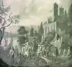 Soldiers And Peasants By A Ruined Monument, A Landscape Beyond