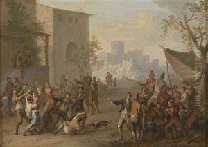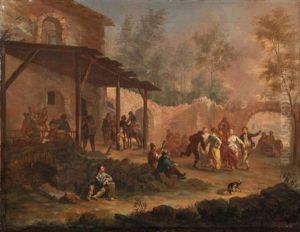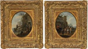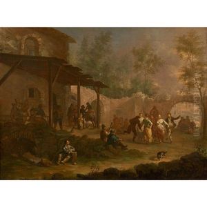 A Pair Of Italianate Village Landscapes, With Peasants Making Merry In The Foreground