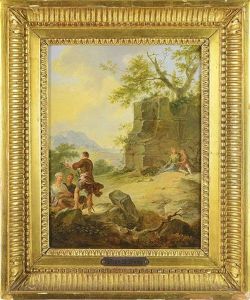 Two Southern Landscapes With Figures Resting Near Antique Monuments