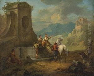 Paysage Italien Avec Des Figures Pres D'une Fontaine