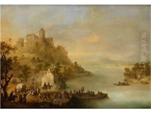 A River Landscape With Travellers Resting On Banks; And A River Landscape With Travellers Crossing A River