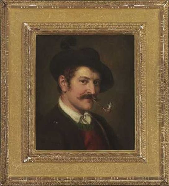 Tiroler Bauer Mit Pfeife Oil Painting by Franz Von Defregger