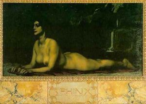 Sphinx Am Felsenrand Uber Einem Wasserfall Liegend