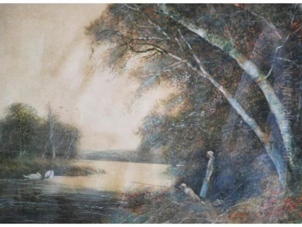 River Scene With Figures On The Bank