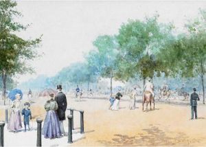 A Snow-clad Mountain In The Rockies, A Railway Track In Theforeground