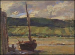 Dutch Sailboats On A River Oil Painting by Frederic Marlett Bell-Smith