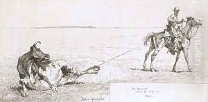 Dragging a Bull's Hide over a Prairie Fire in Northern Texas