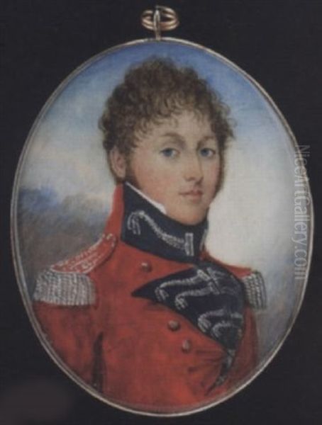 A Young Field Officer (an Inspector Of Militia Or Yeomanry?), His Scarlet Coat With Turned Back Dark Blue Lapels And Collar Patches, With Tasselled Silver Braids And Silver Epaulettes With Red Stripes