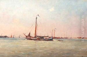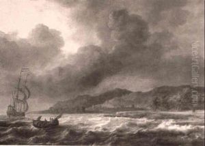 Two- Master Andcoastal Craft In Choppy Seas Off A Coast