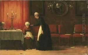 Mother And Children By The Hearth