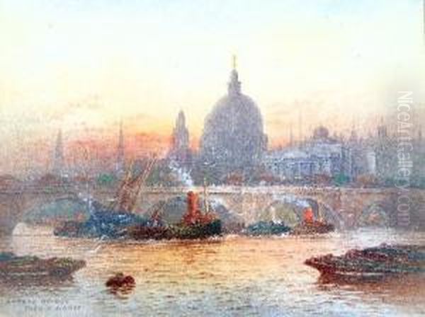 Pair, London Bridge With St. Paul's Beyond, And Tower Bridge, Watercolours Heightened With White
