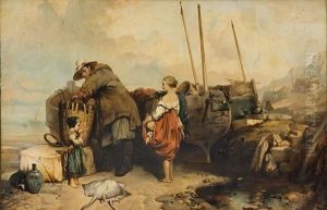 Fisherfolkburning Seaweed Near The Shore