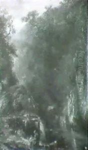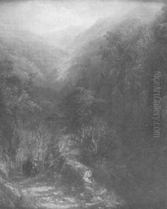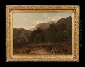 A Mountainous Wooded River Landscape With A Goatherder In The Foreground