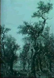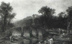 An Extensive Landscape With Cattle, Sheep And Drovers Near Trees