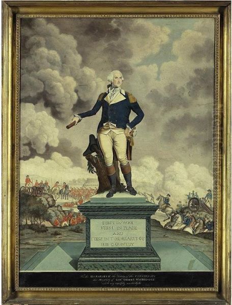 A Portrait Of General George Washington Against The Backdrop Of A Battle Scene, Possibly The Whiskey Rebellion Riots
