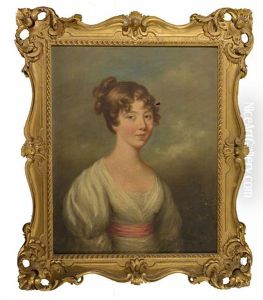 Head And Shoulders Portrait Of A Young Lady, Her Hair Tied In A Bun And Wearing A Cream Dress Tied By A Crimson Sash