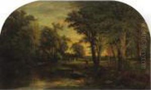 Landscape With Figures Crossing A River, Towing A Hay Cart With Team Of Oxen And A Horse