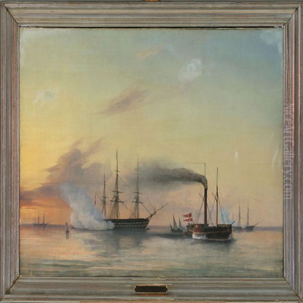 Naval Vessel Saluting King Christian Viii Of Denmark's Yacht "caledonia"