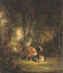 Wooded Landscape With A Drover And Cattle