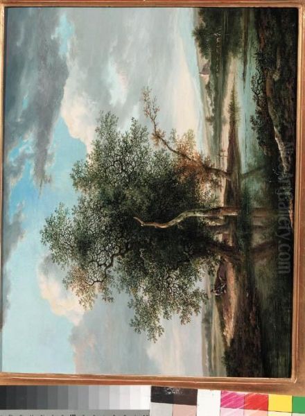 A River Landscape With A Traveller Resting By Trees, Anglers And Ashepherd Beyond
