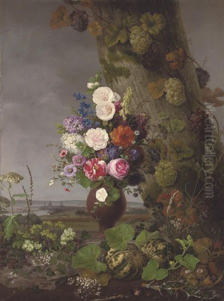 A Still Life Of Wild And Cut Flowers, A Landscape Beyond