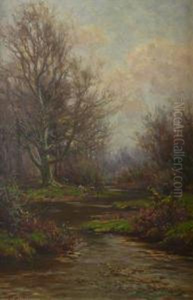 Forest Scene With Horses By A Stream