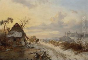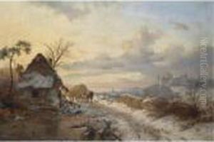 Wood Gatherers In A Winter Landscape, With A Castle Beyond