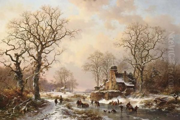 Winter Landscape With Skating Figures Near A Castle