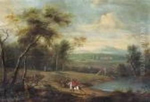 Figures On A Sunlit Path Near A Mansion Oil Painting by Frederik Marinus Kruseman