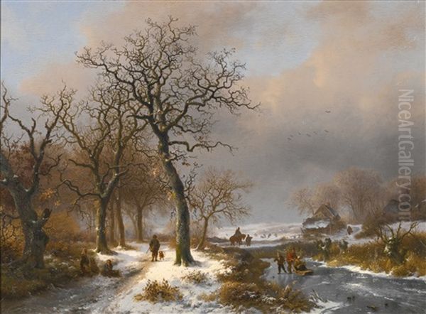 Winter Landscape Oil Painting by Frederik Marinus Kruseman