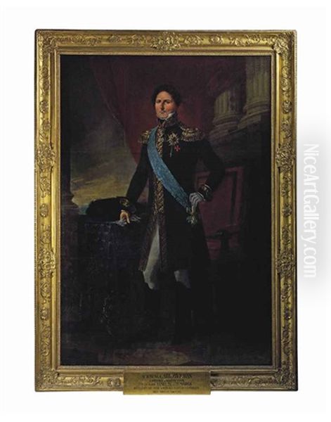 Portrait Of Carl Xiv Johan, King Of Sweden And Norway (1763-1844), Full-length, Wearing The Royal Order Of The Seraphim, Standing Beside A Table