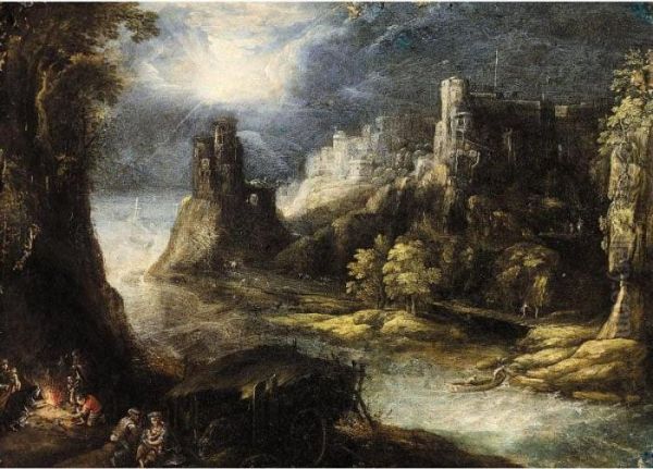 A River Landscape With A Forge, A Hilltop Town Beyond