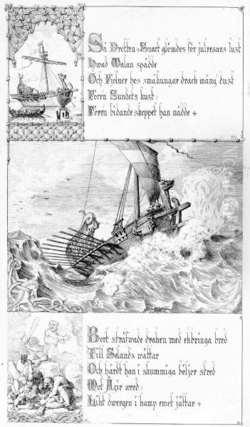 Illustration till "Fjolners saga". Plansch 16