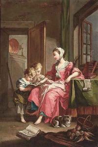 The children of a noble family playing in an elegant park attended by a page, a pug in the foreground