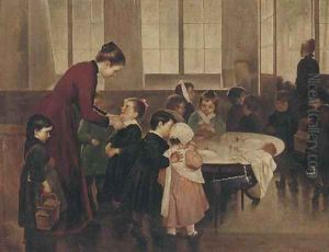 Portrait Of A Lady, Half-Length, In A Black Dress With A Lace Collar And Broach