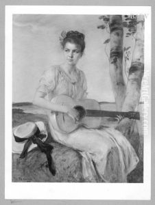Bildnis eines sitzenden jungen Madchens in weissem Kleid